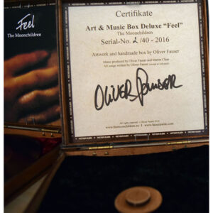 Oliver Fauser’s musical projects with The Moonchildren influence his visual compositions. Rhythms, dynamics, and storytelling in his music inform colors, textures, and the layering process in 3-dimensional works. His art and music merge, offering audiences a multi-sensory experience where PopArt Portraits and StoryBoxes coexist with melodic inspiration.